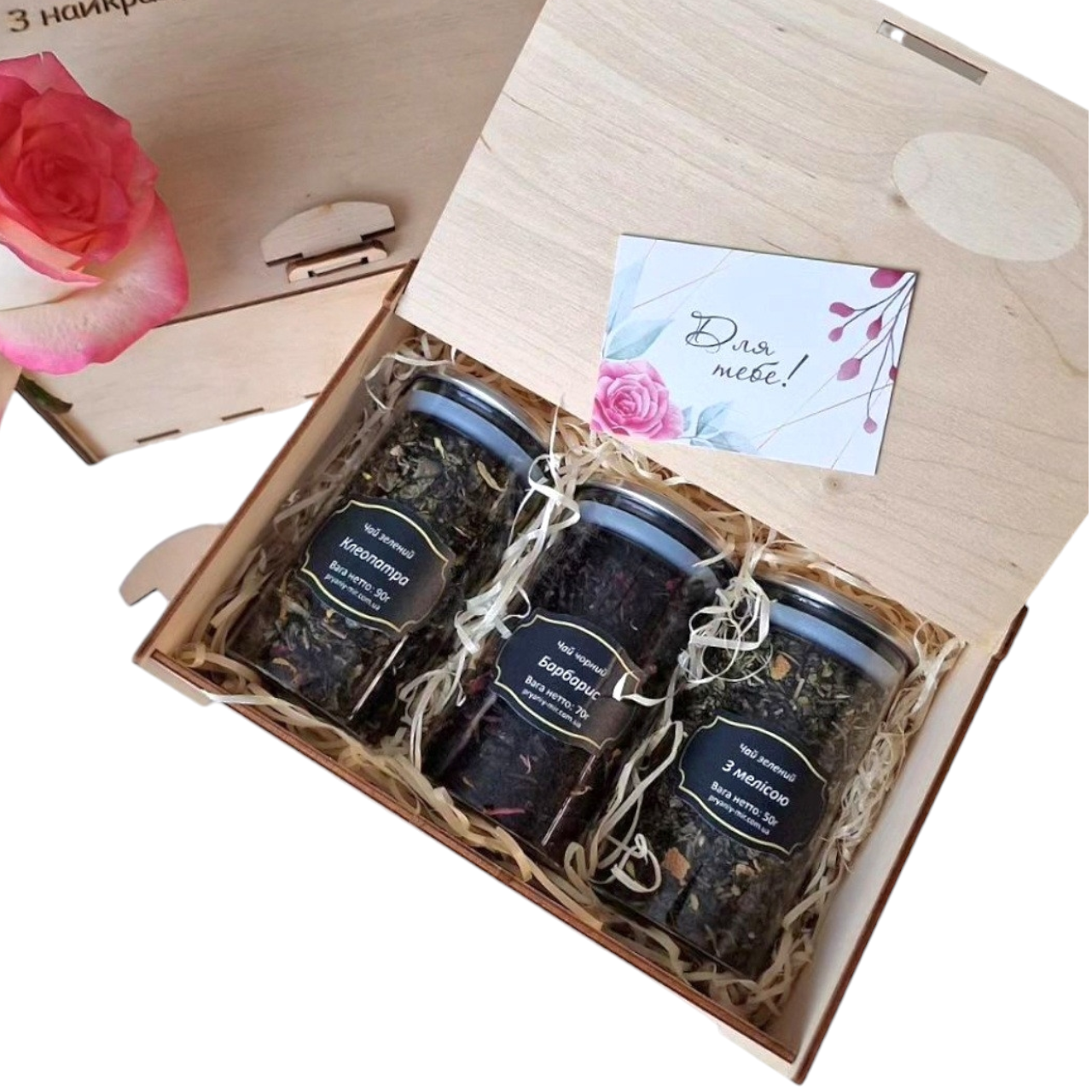 Набір чаю подарунковий у дерев'яній коробці 210г